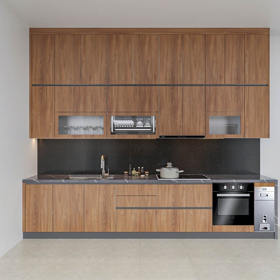 Bộ tủ bếp được bố trí công năng khoa học, phù hợp thói quen sinh hoạt, giúp không gian bếp luôn gọn gàng, ngăn nắp và tiện lợi trong quá trình sử dụng.