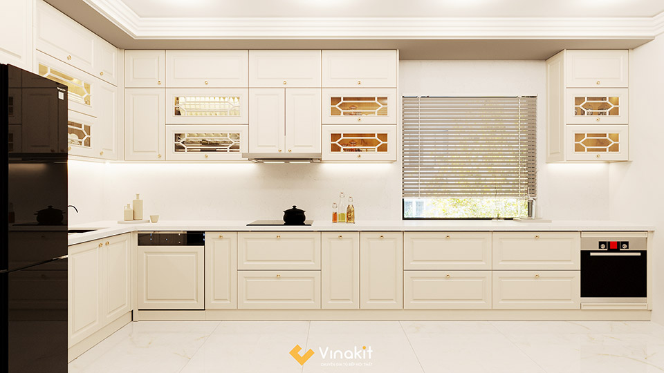 Mẫu tủ bếp gỗ công nghiệp cánh sơn Inchem INCB14 – Phong cách tân cổ điển tinh tế